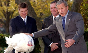 大家都知道美国人在感恩节——11月最后第四个星期四——都会吃“火鸡大餐,”但在美国尚有另一个流传已久的感恩节传统,那就是美国总统都会在感恩节一周前“赦免”一只火鸡,免了这只火鸡在感恩节时成为人们餐桌上佳肴的死罪。这项有57年传统的“特赦”仪式不仅象征美国人在缅怀前人之时,也能珍惜所有……