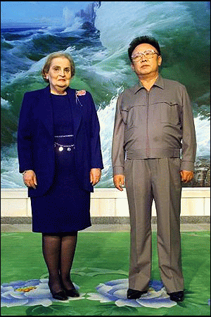 图文:金正日与奥尔布赖特举行历史性会谈 2000年10月23日 20:34 金正日(右)亲临奥尔布赖特(左)下榻的宾馆与她举行会谈。 金正日露出灿烂的笑容,与奥尔布赖特热情地握手,向奥卿证明自己并非外界所形容的冷漠。 中新网北京10月23日消息:到朝鲜访问的美国国务卿奥尔布赖特,在平壤与朝鲜领袖金正日举行历史性会谈。金正日亲临奥尔布赖特下榻的百花苑迎宾馆与她会面。他提到奥尔布赖特是首位美国国务卿访问朝鲜时说:“从历史的观点来看,这是崭新的一页,我真的非常高兴。” 金正日还感谢奥尔布赖特在朝鲜国防委员会第一副委员长赵明录访问美国时,为他安排与美国总统克林顿见面。 而奥尔布赖特也表示,能够访问平壤感到非常高兴。 奥尔布赖特在会面前向记者表示,美国政府正就与朝鲜修好的问题进行仔细研究,但美国不会太急进,一切均以美国利益为依归。 奥尔布赖特是美国历来访问朝鲜的最高级官员,她的这次访问,标志着朝鲜进一步融入国际社会。在过去一年里面,金正日已经先后与中国国家主席江泽民、俄罗斯总统普京和韩国总统金大中会面。 虽然预计奥尔布赖特在访问朝鲜的两天内,不会与朝鲜签署任何协议,但她将会为美国总统克林顿访问朝鲜铺路。 |