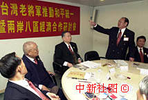 图文:十六名台湾退役将军在澳门发表宣言反对“台独” 2000年11月28日 19:53 ![]() 台湾退役将军发表宣言。十六名台湾退役将军二十八日在澳门举行反独促统研讨会,并发表宣言。中新社传真 宗金柱 摄