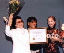 中新社纽约六月十五日电(记者郭健)饮誉中外的粤剧一代宗师红线女,今晚在此间林肯中心接受“亚洲最杰出艺人奖”暨“粤剧终身成就奖”,全场近两千名观众起立鼓掌。 “亚洲最杰出艺人奖”是由林肯中心、纽约文化局、美华艺术协会于一九八一年创办。华裔大提琴家马友友、京剧表演艺术家张君秋、袁世海、刘长瑜、豫剧表演艺术家新凤霞、常相玉等都曾是该奖项的得主。今晚的二十一届“亚洲最杰出艺人奖”另外三位获奖者是日籍华裔舞蹈家于莉佳,上海昆曲名家计镇华、台湾琵琶演奏家王正平。 为出席仪式并颁奖的纽约市文化局副局长罗斯查德女士特意身着中式紧身夹袄。她在致词中表示,作为第二代美国移民,她对保持原住国文化的重要意义有切身体会。她说:我很羡慕中国有如此多姿多彩的文化艺术,希望能够珍视它,发扬它。 原名邝健廉、从艺六十年“红派”宗师红线女系影剧两栖演员,拍摄影片八十余部。她于一九五五年加入广东省粤剧团,代表作有《搜书院》、《昭君出塞》、《关汉卿》等。为粤剧的繁荣贡献良多。今晚,她在热烈的掌声中接受戏迷们的献花,激动地说:我是一名艺术工作者。颁发终身成就奖,但我的艺术生活并不就此停止。 颁奖仪式之后,“亚洲最杰出艺人奖”得主于莉佳等表演了根据《卧虎藏龙》改编的大型音乐芭蕾舞剧《魂愿》。与会者还欣赏了红线女的粤剧片断以及越剧《红楼梦》片断。 中国驻纽约总领事张宏喜夫妇出席颁奖仪式。(完) |