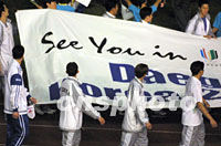 闭幕式上进行了大运会会旗交接仪式。北京市长刘淇把大运会会旗交给了国际大体联主席基里安,基里安再把会旗交到了下届大运会的主办地--韩国大邱市市长手中。