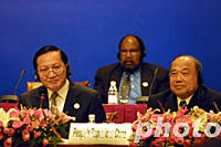 APEC快递:唐家璇、鲍威尔纵论中美关系(附图) 2001年10月18日 19:49 ![]() 中国外交部部长唐家璇十八日在此间举行的APEC双部长联合记者招待会上说,我对中美关系的发展前景很乐观。中新社记者 潘索菲 摄 ![]() 美国国务卿鲍威尔十八日在此间举行的APEC双部长联合记者招待会上说,美中确实存在很好的关系,这符合亚太地区的利益。中新社记者 潘索菲 摄