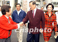 组图:马英九巡视台北各街巷投票站 2001年12月01日 16:59 ![]() 国民党籍的台北市长马英九被称为本次台湾选举的五大竞选天王(陈水扁、李登辉、连战、宋楚瑜、马英九),"小马哥"清晨投票后赶到国民党主席连战的选区陪同连战夫妇投票时,受到连战住区的里长何信隆的欢迎。中新社记者 任晨鸣 摄 ![]() 国民党籍的台北市长马英九12月1日陪同连战和陈水扁投票后到各街区投票站巡视,马英九表示台北市警方已经做好防范不允许暴力活动出现。中新社记者 任晨鸣 摄