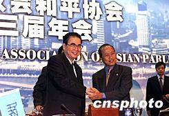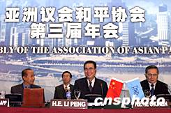 AAPP在重庆召开第一次全体会议 李鹏当选主席 2002年04月17日 20:15 ![]() 亚洲议会和平协会第三届年会十七日在中国重庆市继续举行全体会议,中国全国人大常委会委员长李鹏在会上当选为协会新任主席,前任主席拉那烈表示祝贺。中新社记者 毛建军 摄