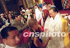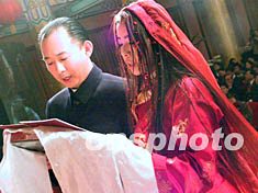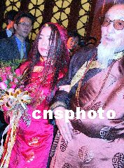 台湾前政要陈履安长子与藏族姑娘在京喜结良缘 2002年04月28日 17:09 ![]() 图为藏族姑娘在父亲的带领下步入结婚礼堂。王丽南 摄 ![]() 台湾先生与西藏女认识两月成婚。王丽南 摄 ![]() 参加陈宇廷和藏族姑娘央金拉姆的婚礼,争相为新婚人送哈达。王丽南 摄 中新社北京四月二十八日电(记者耿军)台湾知名人士陈履安先生的长子陈宇廷与西藏女企业家、歌手央金拉姆喜结良缘。陈宇廷与央金拉姆的婚礼今天上午在北京饭店大宴会厅举行。 婚礼主礼台正后方悬挂着硕大的“解脱”二字,左右悬挂弘一大师的书法“不为自己求安乐,但愿众生得离苦”。主礼台上陈放有四只高大的经幢及唐卡,六位身披法衣的喇嘛分列两侧。 上午十一时,婚礼在法号声中开始。大型投影屏幕上播放新人剪影短片,片中介绍了陈宇廷的爷爷陈诚、父亲陈履安及央金拉姆一家。 当身着白色中式对襟衫的伴郎陪陈宇廷、身着藏装的伴娘陪央金拉姆入席时,活佛带领喇嘛唱颂吉祥祝福文。 这对新人依次献上礼品,以报答父母、众生、国家和三宝四重恩德,并跟随活佛念“忏悔经”、“发愿文”。 这对新人在宣读结婚誓约后,交换信物。陈宇廷赠予央金汉传僧服和藏传僧服,央金赠予陈宇廷金钢铃和金钢杵。 陈履安先生代表家长向主持婚礼的活佛及来宾表示感谢。 担任解脱服饰实业副董事长、化育文教基金会与陈诚文教基金会执行长的陈宇廷,今年三十七岁,曾获哈佛大学企业管理硕士学位。央金拉姆是藏族女企业家和歌手,她曾在北京中央民族大学艺术系和兰州西北民族大学艺术系就读,近年出任奇正藏药集团营销副总经理。这对新人于去年在广东中山相识。 各界人士近千人出席了今天的婚礼。 相关报道:台湾前“监察院长”陈履安抵京参加儿子婚礼