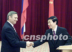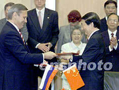 国务院总理朱鎔基和俄罗斯总理卡西亚诺夫,二十二日在上海签署《中俄总理第七次定期会晤联合公报》。满会乔 摄