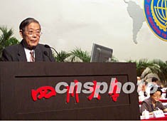 中国科协2002年学术年会五日在四川大学体育馆隆重开幕。中国科协主席周光召致开幕词。作者:陈雯