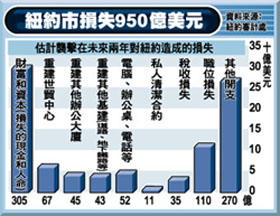 ●由于曼哈顿下区大部分业务实际上已经结束,机场亦停止运作,以致保险公司为“业务受阻”赔偿近80亿英镑。