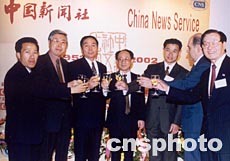 贵宾们共同举杯祝贺中新社“生日快乐”,事业发达。