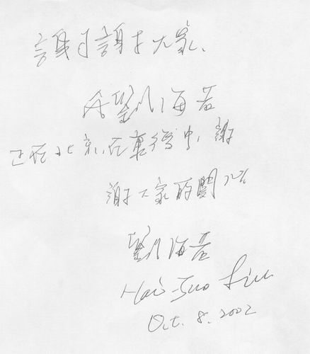 进入10月以来,海若已能够用文字表达自己的感情。在一张纸上,海若写道:“谢谢大家。我是刘海若,正在北京康复中。谢谢大家的关心。”并用中英文写下自己的名字。在另一张纸上,海若写道:“很想念大家,希望大家幸福快乐。我很快回到工作岗位和大家见面。听说小莉要生宝宝了,祝她们健康幸福。”