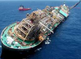 14日晚,由于突然停电,这个叫P-34的钻油船内的储存的石油流向船内油箱的一侧,导致船体发生严重倾侧,倾斜度达30度。在船上工作的76名工人随即被撤离到另一个钻井平台上,据该公司发言人称,目前该船上约1200万升的石油没有发生泄漏,船上也没有出现着火或爆炸。