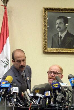 萨达姆的高级助手伊扎特-伊伯拉希姆在巴格达召开的新闻发布会上公布了上述官方统计结果,他表示伊拉克有资格参加全民公决的公民在周二当天几乎全部参加了投票。