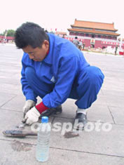 国庆黄金周过后天安门广场清出口香糖40余万块 (2002-10-15 09:21:52)