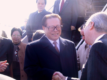 江泽民主席抵芝加哥开始对美国进行工作访问(图)