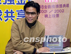 歌星苏永康10月23日在香港出席《TVB8金曲榜颁奖典礼2001/2002》记者会,为《TVB8金曲榜颁奖典礼2001/2002》在网上为喜爱的歌曲投票。邓庆乐 摄