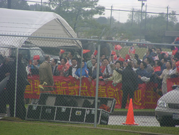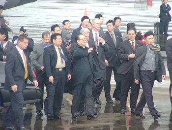 江主席的夫人王冶坪、中国国务院副总理钱其琛和夫人周寒琼等陪同人员同机抵达休斯敦。