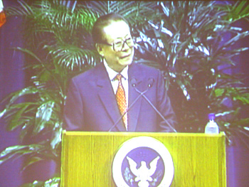 图文快讯:江泽民主席在布什图书馆发表演讲