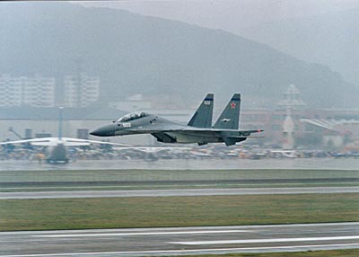 前苏联的独联体国家在本届航展上是展出面积最大的外国厂商,首次展出了苏-30MK战斗轰炸机和卡-50武装直升机,安-70军用运输机,并冒雨进行了飞行惊险的表演。这都是世界一流的装备,具有优越的性能和超强攻击能力,但出于政治和贸易保护的考虑,西方坚决拒绝采购这些极有竞争力的飞机,而俄罗斯军方又没有资金采购新机,使俄罗斯航空工业陷入困境。其实整个俄罗斯国防工业都在困难中挣扎,为了获得急需的资金,俄罗斯公司在航展上推销各种世界一流的枪械和反坦克导弹。