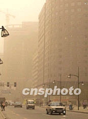中新网11月11日电 因受蒙古气流影响,吉林省今天出现扬沙浮尘天气,整个长春市弥漫在昏黄之中,对交通和市民出行产生了较大的影响。