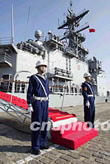 美舰抵青后,海军北海舰队在码头举行了欢迎仪式,为美舰来访举行了欢迎招待会。