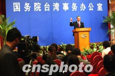 中国国务院台湾事务办公室二十七日在北京钓鱼台大酒店举行新闻发布会,新闻发言人张铭清就不久前闭幕的中共“十六大”、“两岸直航”等记者们关心的问题回答提问。作者:毛建军