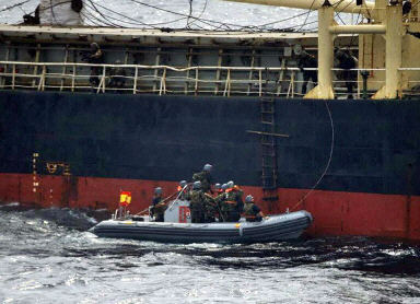 10日,西班牙军舰根据美国的情报在阿拉伯海海域拦截了这艘货船,船上装有据信从北朝鲜运往也门的军火。