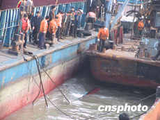 负责沉船打捞的中山舰打捞公司有关人员介绍,由于长江水流速目前太快,打捞工作遇到了很大的困难,潜水员无法下水确定沉船的准确位置。打捞公司今天还将用两根钢缆固定沉船。
