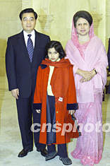 中共中央总书记、国家副主席胡锦涛,二十五日在北京会见孟加拉国总理卡莉达·齐亚一行,并与总理和她的小孙女合影。作者:满会乔