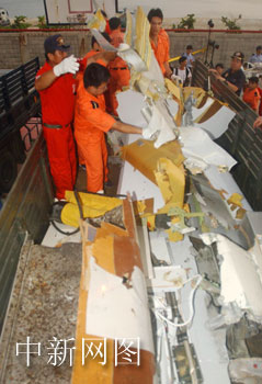 5月27日,大批失事华航客机的残骸被集中运往事故研判中心。中新社传真 任晨鸣 摄