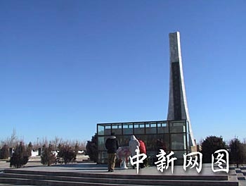 新中国开国元勋聂荣臻元帅对中国航天事业发展倾注了大量心血,他逝世后骨灰便安放于被誉为中国航天事业发祥地的酒泉卫星发射中心内的东风烈士陵园。图为参观者前来聂荣臻墓前凭吊。中新社记者 孙自法 摄