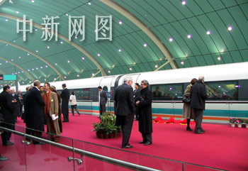 中新网12月31日电 世界第一条磁浮商业示范线——上海磁浮列车线今天上午试运行通车,国务院总理朱镕基和正在中国访问的德国总理施罗德亲临现场,为上海磁浮列车示范运营线试运行通车剪彩,并一同乘坐了首发的磁浮列车。