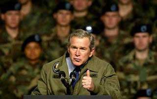 身穿绿色军用夹克的布什对四千多名军人及他们的家属发表演说,他语调慷慨激昂:“我们已做好准备。”对伊拉克的战争并“不是去征服,而是去解放”。