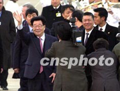 应澳门特区政府的邀请,全国政协主席李瑞环七日到达澳门特区进行访问。 中新社传真 李刚 摄