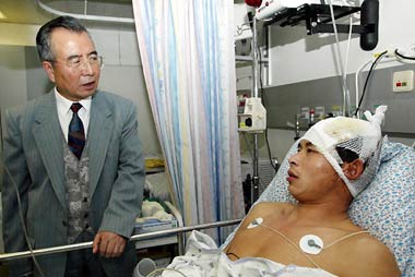 3、七位受伤人员分别是:1)张敏民,女,浙江舟山人,生命垂危,尚未脱离危险。2)陈文,男,福建平潭人,福通公司派出,重伤,做脾切除手术,无生命危险。3)葛存虹,轻伤,手脚擦破。4)储开文,受伤,头部有两块金属片。中土公司派出。5)王志友,沈阳人,脚部和胸部轻伤。6)王运祥,四川广安人,轻伤。7)王平桂,江苏省人,轻伤。