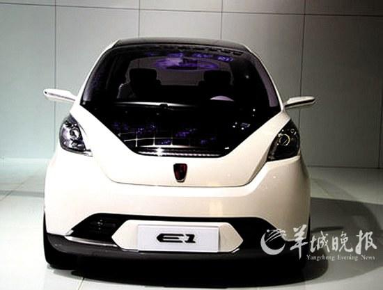 上汽纯电动概念车荣威E1也是2010年世博会中国国家馆的镇馆之宝之一。做为中国国家馆低碳区唯一的产业化方向新能源汽车展品,E1将向全球介绍中国新能源汽车产业化发展成果。荣威E1为单厢三门四座A00级轿车,车身设计运用One Box概念,最大限度拓展车辆内部空间。E1搭载了性能安全的磷酸铁锂电池系统,最高时速为120km/h,最大续驶里程为135km,0-100km/h加速时间为16秒。该车具备快速充电功能,30分钟内可充电80%。预计将在2012年正式实现量产。