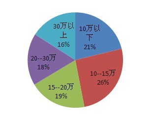 车主驾驶10万元以下车型的为21%,10—20万元为45%,20-30万元为18%,30万以上为16%。这是一个与市场销量格局类似的票民格局。