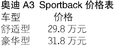 6月28日,一汽-大众奥迪销售事业部正式宣布奥迪A3 Sportback首发限量版车型在中国上市。奥迪A3 Sportback首发限量版舒适型和豪华型的售价分别是人民币29.8万元和31.8万元,并从即日起开始在一汽-大众奥迪品牌授权经销商处接受预订。