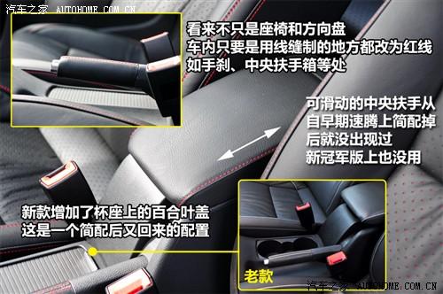 内饰的变化主要有两方面,一是将车内真皮的缝合线从白色变成红色,与整体黑色的内饰结合,运动效果更明显。另一处实用性更强的变化就是将真皮座椅进行打孔处理,现在已经进入夏天,将会有更多的新冠军版车主享受到这项变化所带来的好处。增加的实在配置还有定速巡航,少说也是几百元的成本。