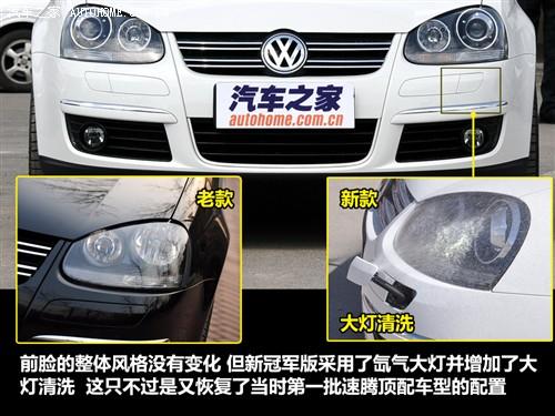 从配置和价格上来讲,2010款速腾冠军版的指导价没有变化,但增加了几项非常实用的配置,首先就是带有清洗的氙气大灯,用户自行改装不仅质量参差不齐、有一定风险而且无法实现清洗功能,所以原厂这一项升级为用户节省了5000元以上的改装费用。