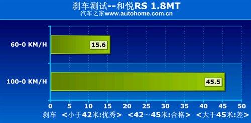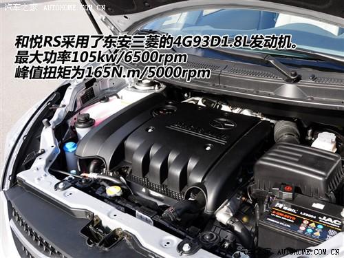 和悦RS全系车型只有一种动力组合,来自东安动力的4G93 1.8L发动机搭配5档手动变速箱,这样的组合技术上并不先进,但是实际测试时0-100km/h 11.8秒的加速成绩还是比较令人满意的。而配有四轮盘刹的刹车系统却表现不佳,100-0km/h的平均刹车距离仅为45.5米,这样的成绩肯定不能令人满意。