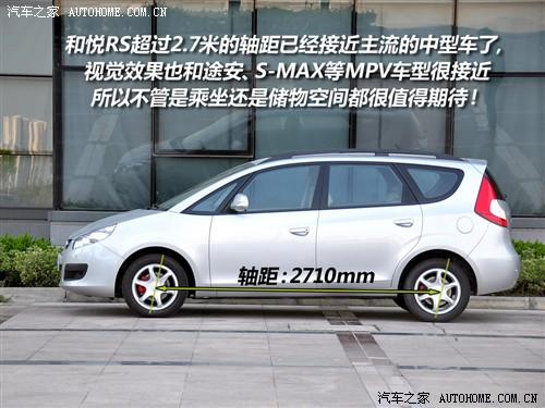 和悦RS的两个特点正好比较符合我们今天的选车标准,其一是外形要大气、漂亮,RS的外型设计比较成熟,车身线条流畅,具有很强的整体感。其二是空间够大,由于和悦RS的后两排座椅都可以折叠或取下,所以其可以在坐人和载物之间比较灵活的转换。