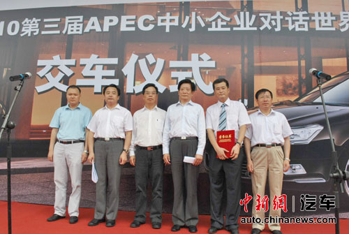 中新网7月7日电 日前,在福州国际会展中心,东风雪铁龙市场与对外宣传部副部长王涛将一把特别制作的钥匙,交给工信部中国中小企业发展促进中心主任袁普,标志着由20辆东风雪铁龙C5组成的“第三届APEC中小企业对话世界500强财富论坛”贵宾车队正式投入使用,在6月30日至7月2日期间,全程为与会的中国政商精英和世界级经济领袖提供服务。