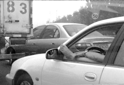 昨天,记者在猫扑论坛的帖子看到,4张图片显示,事发时东五环交通较为拥堵。网友“小猫”称,他正以每小时15公里的速度前行时,一辆尼桑车强行并线。“小猫”随后发现,尼桑车左前车窗被摇下,司机把左腿搭在车窗上,左手放在腿上。“小猫”把所拍图片传上网络论坛,尼桑车司机被网友戏称为“尼桑伸脚帝”。有网友判断,该司机所驾车辆为自动挡,“不然不可能抬出一只脚放在窗户上乘凉”;有网友评论,尼桑车司机的行为太不雅观;也有表示“理解”的网友称:“北京太热了,让他伸出来晾晾吧!”