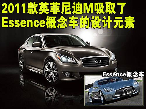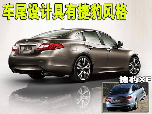 2011款英菲尼迪M在外观设计上,吸取了在2009年日内瓦车展上展出的Essence概念车的设计元素。带有上下拱形线条的长方形格栅,向后拉伸的L形大灯,发动机盖两边巨幅隆起的动感褶皱以及优美流畅的腰线。新款M的车尾方面,第一印象给了我们一种强烈的捷豹风格,收缩的臀部以及尾灯都让我们想起了捷豹XK的动感车尾。