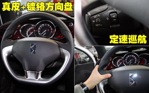 雪铁龙DS3采用了三幅式方向盘,配以银色的装饰面板,整体感觉运动时尚。这款方向盘的包覆材料为真皮材质,质地较软手握感觉比较舒适。