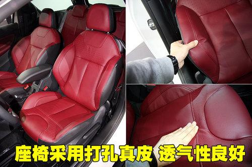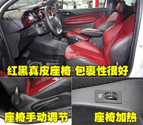 雪铁龙DS3整车座椅均采用红黑真皮材料,驾驶席座椅前后、靠背角度、座椅高度为手动调节。各拉手四周做工较细致,没有感觉到松垮的感觉。