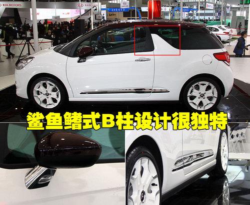 雪铁龙DS3的车身设计犹如宝马MINI、菲亚特500等经典车型,采用了大量的圆润设计,显得十分的可爱,DS3的外后视镜柱采用了金属材质并集成转向灯。另外值得一提的是,这款车的B柱区别于普通车型,采用了鲨鱼鳍式的独特设计。