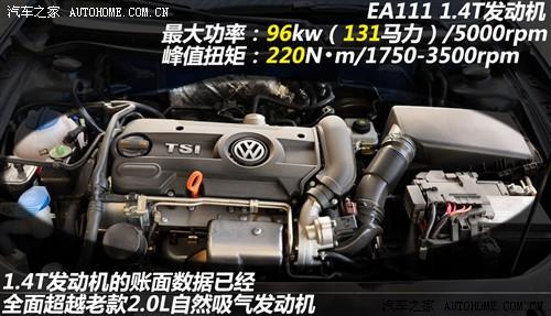 1.4T这套动力总成在高尔夫6、速腾、明锐等车型上都已出现,发动机最大功率96kw(131马力)/5000rpm,峰值扭矩220N·m/1750-3500rpm,账面成绩已经全面超越老款2.0L发动机。同时干式七速双离合变速箱在加速性能、日常驾驶平顺性、燃油经济性方面也直接秒杀原来的5速手动、6速自动变速箱。当然进步往往是需要代价的,比如后期的保养、维修费用要高出原先的组合。