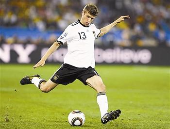 本届杯赛打进5球并有3次助攻的托马斯·穆勒,荣膺南非世界杯最佳射手,他也获得了本届世界杯的最佳新秀奖。德国神奇小子托马斯·穆勒在德国与乌拉圭争夺第三名的比赛中再入一球,不但帮助年轻的德国队获得世界杯季军,也将他在本届世界杯的进球数提升至5球。在射手榜上,穆勒与比利亚、斯内德和弗兰并列头名,但由于助攻次数多而摘得金靴奖。托马斯·穆勒是德国新生代球员的代表,在场上有着敏锐的嗅觉。本届世界杯,穆勒总共有五脚射门打中门框范围,全部破门,100%的射正得分效率让人胆寒。