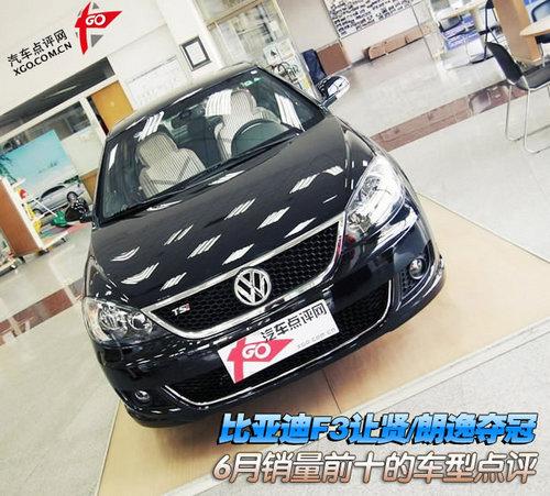 6月份的车市销量堪称风云突变,从销量排行榜上来看,最吸引人眼球的变化还是比亚迪F3的滑落,从蝉联多月第一名、到一落第6名,让自主车型的支持者难免有几分唏嘘;而上月的第二名上海大众朗逸,也自然上升一位,占据了6月销量冠军的宝座。
